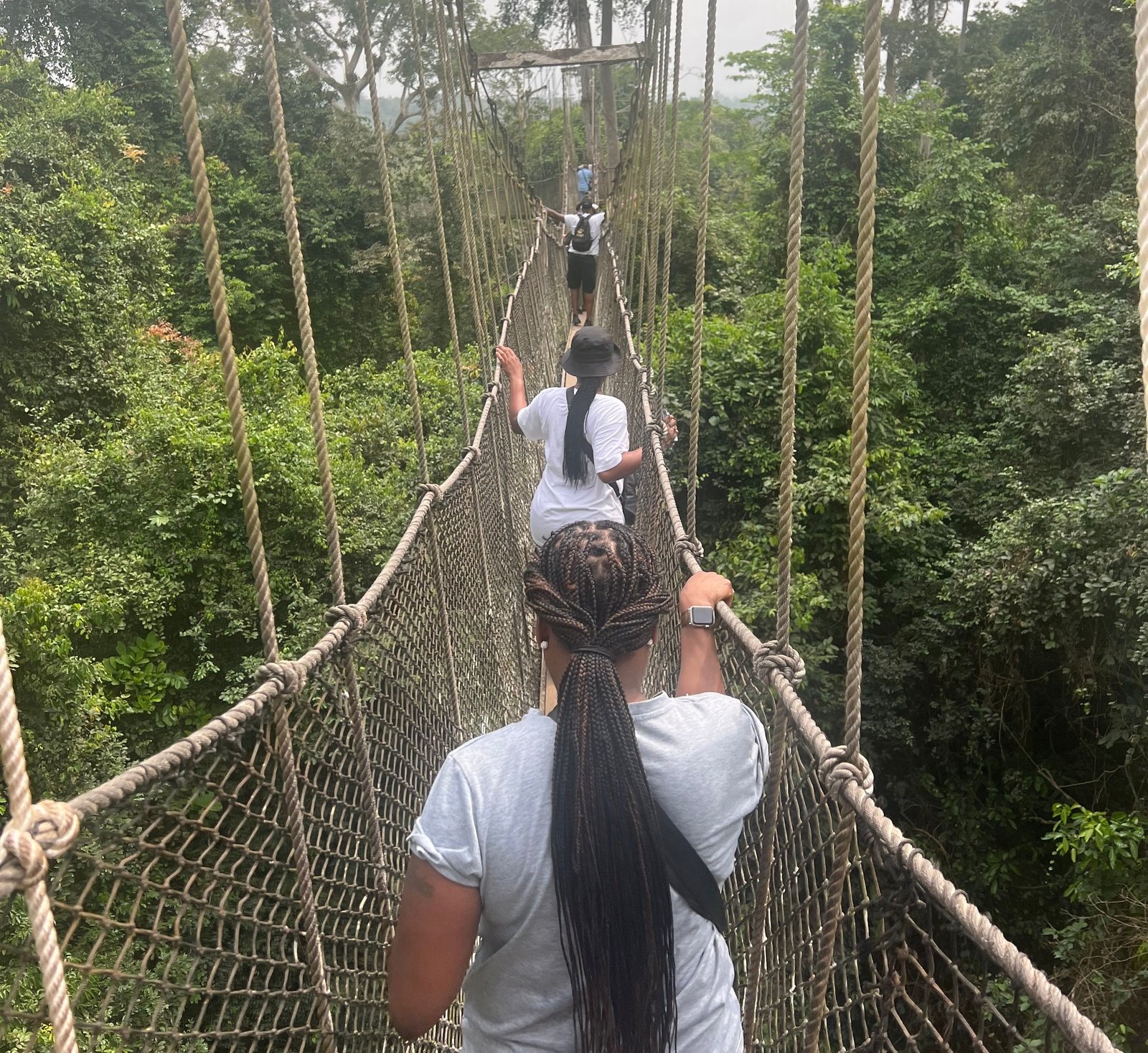 The park’s crown jewel is its famous Canopy Walkway — a thrilling series of rope bridges suspended high above the forest floor. As you make your way across, you’ll be treated to sweeping panoramic views of the treetops.