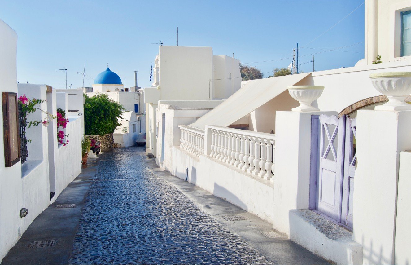 Perched high above the shimmering waters, the whitewashed, cube-shaped houses of Fira and Oia sparkle in the sunlight, their narrow winding lanes leading to charming shops, cozy tavernas, and churches crowned with iconic blue domes.